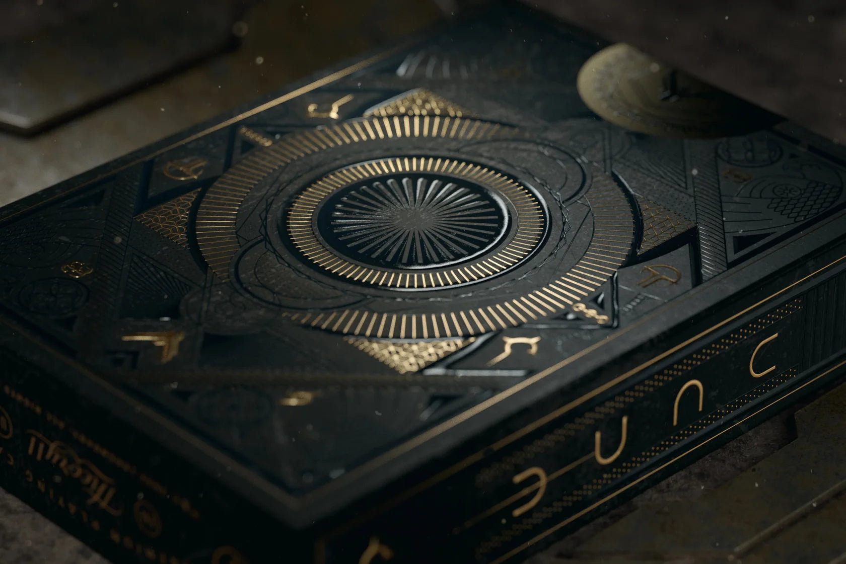 Ningún detalle se pasa por alto: la baraja de cartas Dune presenta ilustraciones completamente personalizadas en cada aspecto del diseño. Los ases, los comodines, el diseño de la caja y las figuras están inspirados directamente en los personajes y eventos favoritos de los fans de la aclamada película. ¡No te quedes mirando el dorso demasiado tiempo, podrías ser devorado por la boca abierta del gusano de arena!